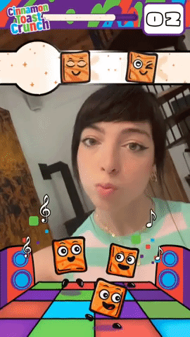 The Branded Effect: Our effect took this platform insight and expanded it to an even more gamified version, using the Cinnamoji visuals. The effect picked randomized Cinnamojis to scroll onto the user's screen, and one at a time the user tried to match them as the speed and difficulty increased. It even scored how well the user matches the face.